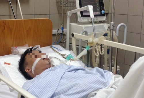 Gia đình xác định anh bị rắn cắn song không biết từ khi nào nên đưa vào bệnh viện ở Hải Dương. Sau đó anh được chuyển đến Trung tâm Chống độc, Bệnh viện Bạch Mai (Hà Nội). Bác sĩ Nguyễn Trung Nguyên phụ trách Trung tâm Chống độc cho biết, bệnh nhân nhập viện trong tình trạng liệt cơ hô hấp phải mở khí quản, thở máy.