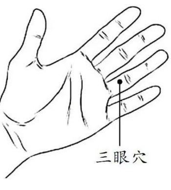Huyệt Tam nhãn nằm trên đốt ngón tay thứ 3 của ngón đeo nhẫn, trong lòng bàn tay (xem hình minh họa).