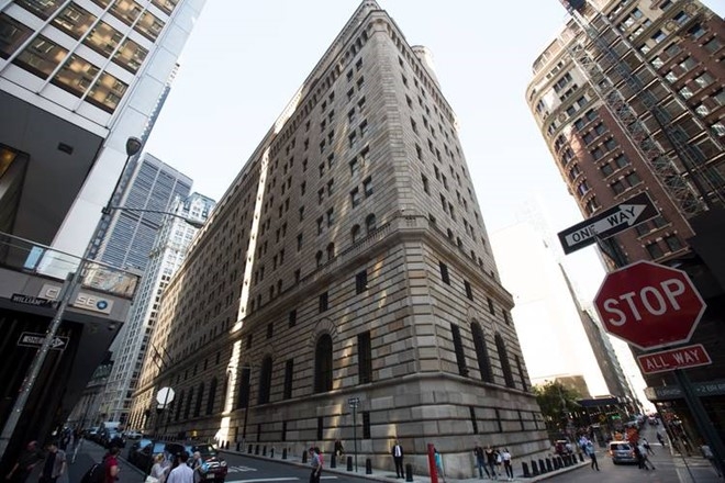 Kho vàng lớn nhất tế giới trị giá gần 200 tỷ USD, tọa lạc ở độ sâu 9m dưới hệ thống tàu điện ngầm của thành phố, bên trong Ngân hàng Dự trữ Liên bang (FED) tại thành phố New York, Mỹ. Nhìn từ xa, tòa nhà của FED New York nửa giống một tòa nhà văn phòng, nửa giống một pháo đài trung cổ. Những cửa sổ tại 3 tầng dưới được phủ bởi những thanh sắt lớn. Trên cao là một tháp hình tròn. Ảnh: Reuters