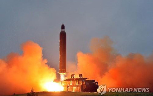Một quả tên lửa Triều Tiên rời bệ phóng. (Ảnh: Yonhap)