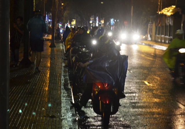 Theo ghi nhận của PV VietNamNet, 21h đêm trong cơn mưa, hàng chục người dừng xe trên lề đường Thành Thái (quận 10, TPHCM) để săn Pokémon. Từng nhóm 3 -4 người, quây lại trong "túp lều" làm bằng áo mưa để săn thú. Một số người còn mang theo ô để che mưa, trong khi mắt dán chặt vào màn hình điện thoại...