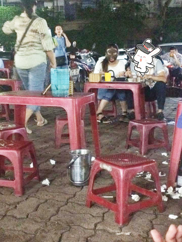 Bức ảnh cô gái đắp mặt nạ đen xì nhìn "như ma" đi ăn ốc vỉa hè cùng bạn được Ngọc Hà chia sẻ lên mạng xã hội với tâm trạng bị “sốc” nặng: “Hôm nay đi ăn ốc lơ ngơ quay đi quay lại gặp “quả này” tí ngã ngửa. Không biết còn chị em nào bận đến mức phải tranh thủ đắp mặt nạ lúc đi ăn ốc không nhỉ?. Đầu tiên tưởng bạn này ở trên chung cư cạnh đấy xuống ăn mà ai dè không phải. Còn đi xe máy đến cơ. Xong để nguyên quả mặt này đeo khẩu trang lao ra đường cơ”.