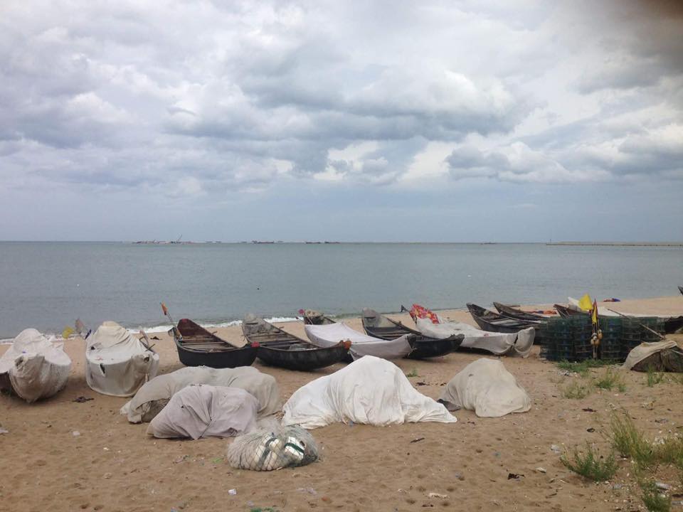 Công trình cảng Sơn Dương vẫn đang được xây dựng giữa biển, gần đảo Sơn Dương. Còn trên bờ, bãi cát vắng hiu hắt, không một bóng người. Hàng chục con thuyền phủ vải nằm trơ. Cách đây mới nửa năm, nơi đây còn vui lắm. Mỗi chiều khi tàu cá về, bà con ào ra đón, hò nhau kéo ghe lên bờ cát, có trông thấy mới hiểu thế nào là niềm vui “cá bạc đầy khoang”. Trẻ con thì ríu rít chơi đùa, đá bóng.