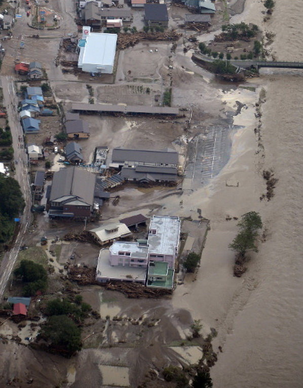 Hình ảnh ở khu vực Iwaizumi, tỉnh Iwate vào sáng 31-8 sau khi bão tràn vào - Ảnh: Mainichi
