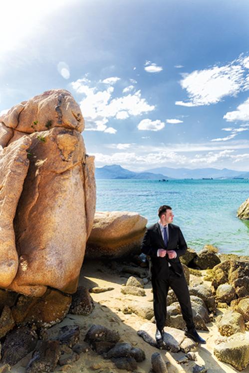Bộ ảnh cưới được thực hiện ở Cam Ranh của cô dâu Việt 25 tuổi, giáo viên dạy tiếng Anh và chàng rể ngoại 32 tuổi đang làm việc tại một công ty nước giải khát ở Australia không chỉ đặc biệt bởi cuộc hôn nhân của hai người mang hai quốc tịch mà còn đặc biệt bởi cách khơi gợi niềm hạnh phúc của họ trong mỗi bức ảnh.
