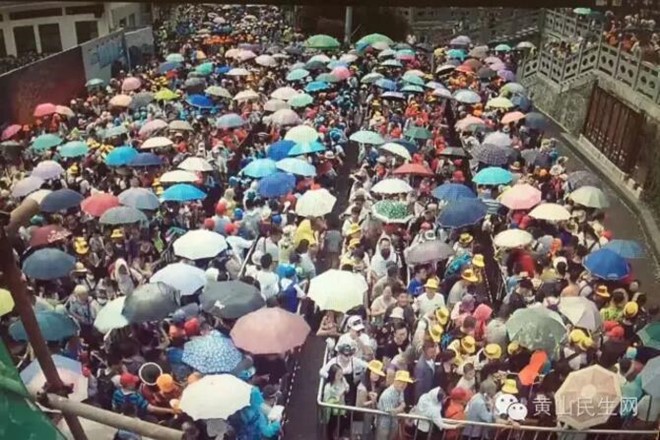 Khu du lịch Hoàng Sơn đông nghịt du khách đến từ Hàng Châu. Ảnh: Sina.