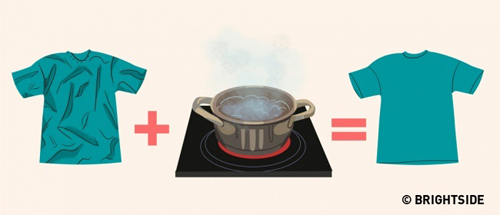 Đun một nồi nước nóng. Đáy nồi nước sẽ nóng như bề mặt một chiếc bàn là. Dùng chính bề mặt đáy nồi để là quần áo. Nghe có vẻ buồn cười nhưng khá là hiệu quả đấy nhé!