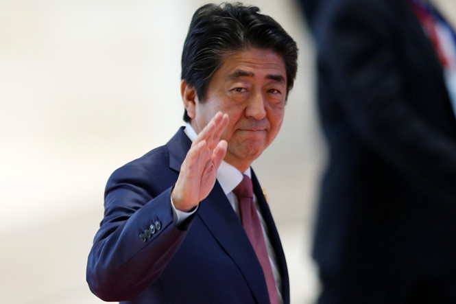Ý định sẵn sàng cung cấp tàu tuần tra mới cho Việt Nam được Thủ tướng Shinzo Abe nói với Thủ tướng Nguyễn Xuân Phúc trong cuộc gặp bên lề hội nghị ASEAN và các hội nghị liên quan tại Vientiane, Lào hôm 7.9. Ảnh: Reuters