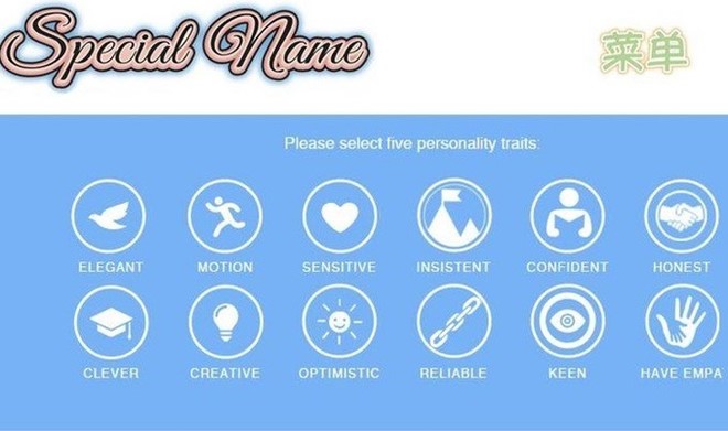 Trang web đưa ra 12 đặc điểm tính cách con người như nhạy cảm, trung thực, tự tin... để các bậc phụ huynh chọn 5 điều mình mong muốn ở con. Sau đó, web tiến hành phân tích và đưa ra 3 tên phù hợp với những tiêu chí đó.