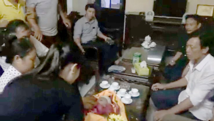 Tối cùng ngày, gia đình đưa thi thể cháu bé đặt lên bàn giám đốc bệnh viện Đa khoa Quốc Oai Đỗ Văn Vy cùng sự chứng kiến của nhiều nhân viên y tế và lực lượng công an, yêu cầu bệnh viện làm rõ.