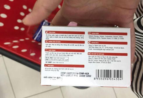 Đặc biệt, tại siêu thị BigC, hàng loạt các sản phẩm nước rửa tay, xà phòng bánh của chính thương hiệu này sản xuất đều có chứa hai loại chất cấm trên như: Nước rửa tay hương đào, hương táo BigC; Nước rửa tay ngăn ngừa vi khuẩn BigC; Xà bông ngăn ngừa vi khuẩn BigC…