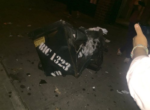 Kính của xe hơi và các cửa hàng gần nơi xảy ra vụ nổ đã vỡ toang. Thùng rác gần đó cũng bị bóp méo do áp lực của vụ nổ. Ảnh: Twitter