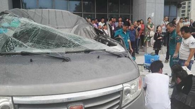 Vào 10h sáng qua, một người đàn ông 40 tuổi ở phố Trịnh Châu, tỉnh Hà Nam, Trung Quốc đã mất mạng bất ngờ. Cái chết của người đàn ông đáng thương này chỉ có thể đổ tại số trời. Khi ông ta đỗ xe bên đường thì bất ngờ một người đàn ông trên nhà cao tầng rơi trúng và xe và đúng vị trí tài xế. Kết quả là một người chết và một người bị thương nặng.
