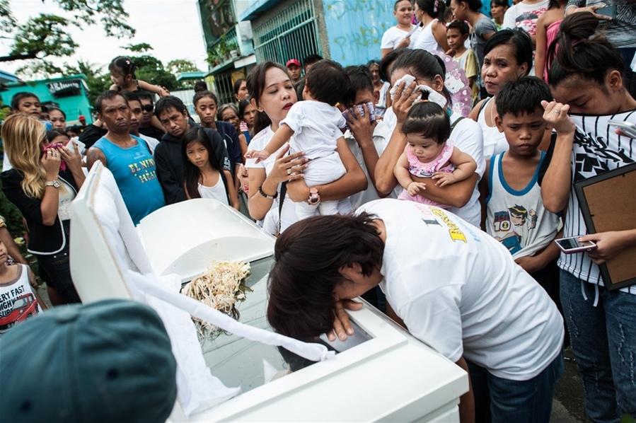 Người thân khóc ngất bên quan tài một người bị giết không qua xét xử do dính líu tới ma túy. Ảnh chụp ngày 21/8/2016 tại Manila. (Ảnh: Dondi Tawatao/Getty Images)