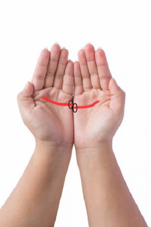 1. Đường tình duyên trên hai bàn tay ngang hàng, liền một mạch với nhau