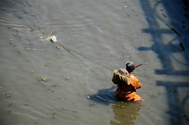 Old  Default Dân TQ đổ xô nhau đi vớt "Vàng" dưới lòng sông thối đen ngòm