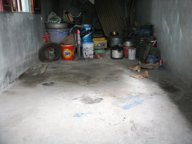 Khu vực nhà bếp nơi bà Nguyễn Thị Hát cùng hai cháu cùng Phạm Thu Hà (8 tuổi) và bé Vũ Khánh Huyền (3 tuổi) bị sát hại.