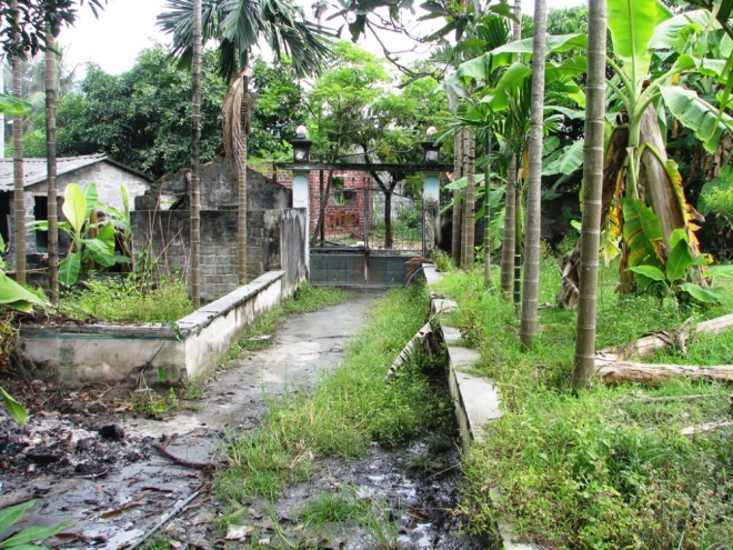 Căn nhà cũ nằm phía sau ngôi nhà chính hai tầng.