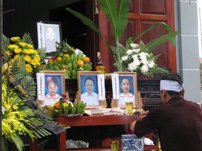 4 quan tài được đặt ở tầng một ngôi nhà 2 tầng. Chiều 24/9, Công an tỉnh Quảng Ninh ra quyết định khởi tố vụ án Giết người, cướp tài sản khiến 4 bà cháu thiệt mạng.