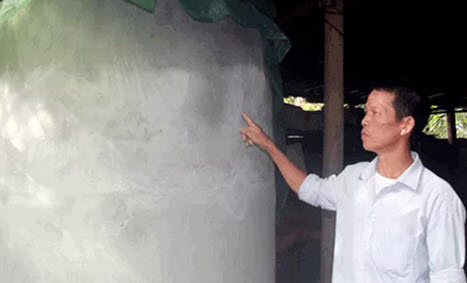 Ông Thọ chỉ bể nước bị đổ thuốc trừ sâu
