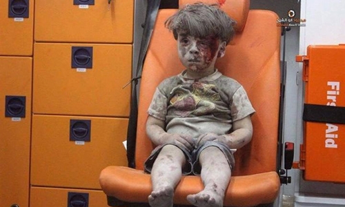Hình ảnh em bé Syris Omran Daqneesh trên người đầy máu và bụi, thất thần sau khi được cứu sống từ đống đổ nát của một tòa nhà cao tầng khiến nhiều người xót xa.