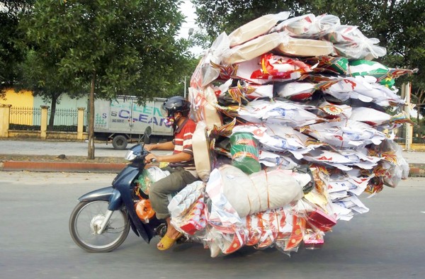 Chở hàng cồng kềnh là vi phạm luật giao thông nhưng nhiều người vẫn làm ngơ. Hình ảnh chở hàng trên phố này không chỉ gây nguy hiểm cho chính bản thân người lái mà còn cả những người tham gia giao thông xung quanh. Đúng là chỉ ở Việt Nam mới có những hình ảnh nhiều xe máy và vô vàn "siêu nhân" chở hàng như thế này.