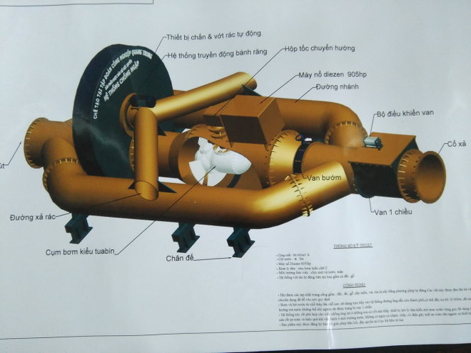 Khi đưa thiết bị của chúng tôi vào thì nó sẽ hút tất cả bùn đất, cây, que, gỗ, giẻ, rác... vào và có một bộ lọc tự động sẽ tách các rác thải này rồi vớt tự động, đưa vào xe chuyên dụng mang đến nơi thu gom.