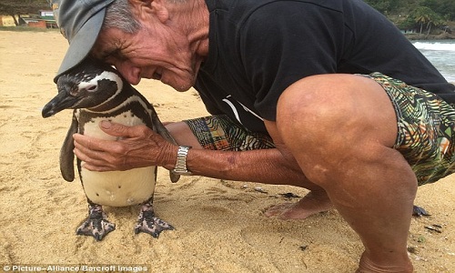 Con chim cánh cụt tên Dindim trở về làng Proveta trên đảo Ilha Grande, Brazil, hôm 5/9 để thăm ngư dân 71 tuổi Joao Pereira de Souza, theo Metro.