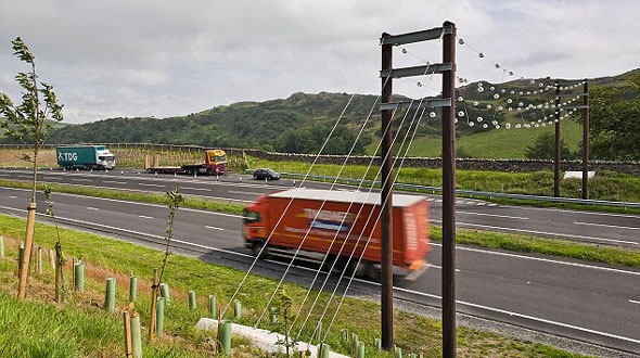 Một kết cấu cầu mới gồm những thanh giằng bằng thép khiến nhiều người ở Anh không khỏi ngạc nhiên. Theo các nhà thiết kế, cây cầu này có tác dụng giúp loài dơi dễ dàng bay qua đường mà không lo bị xe đụng.