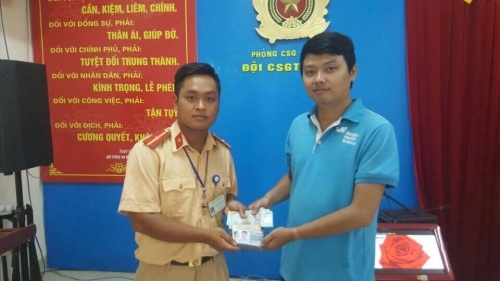 Thượng tá Lê Văn Hoan - Đội trưởng Đội CSGT số 4 - Phòng CSGT đường bộ - đường sắt (PC67 - Công an TP Hà Nội) vừa cho biết: Đơn vị đã bàn giao số tiền hơn 20 triệu đồng cho anh Nguyễn Vi Hoàng (SN 1989, trú tại số 29, tổ 25 thị trấn Đông Anh, Hà Nội).