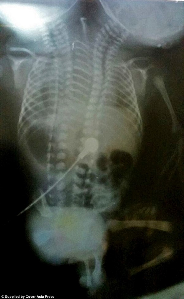 Mặc dù bề ngoài đứa trẻ có 2 đầu và một phần thân nhưng phim chụp X-quang cho thấy phần xương và các cơ quan nội tạng bên trong được tách rời. Các bác sĩ đã cân nhắc đến khả năng thực hiện phẫu thuật để tách rời 2 đứa trẻ nhưng ca dính liền quá phức tạp nên khả năng này là rất khó.