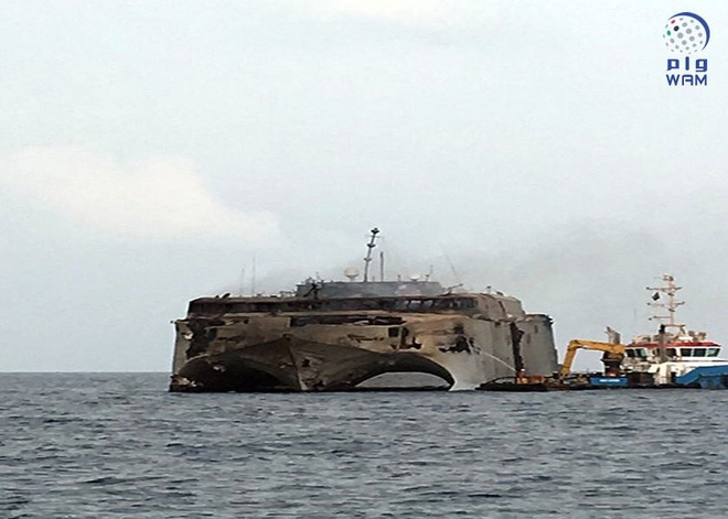 Con tàu này được Quân đội UAE thuê lại và nằm trong liên minh do Ả Rập Xê Út dẫn đầu nhằm hỗ trợ cho Chính phủ Yemen chống lại lực lượng dân quân Houthi. Nó đã bị bắn cháy tại khu vực cảng Mokha (Yemen) gần eo biển Bab el-Mandeb.Hãng tin SPA dẫn tuyên bố của liên minh này cho biết, vào ngày bị tấn công, con tàu đã thực hiện nhiệm vụ chuyển viện trợ y tế tới thành phố Aden và sơ tán dân thường bị thương để điều trị.