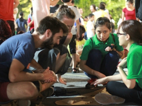 Old  Arrow Video: Khách Tây thích thú chơi trò chơi dân gian trên tuyến phố đi bộ quanh Hồ Gươm