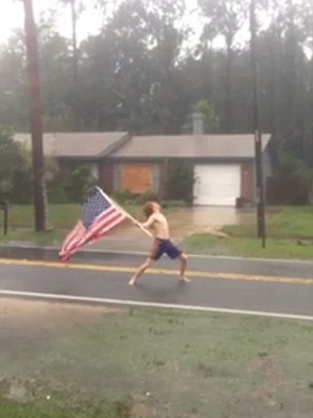Old  English Video: Xem dị nhân nước Mỹ 1 mình cầm cờ chống lại cơn bão Matthew
