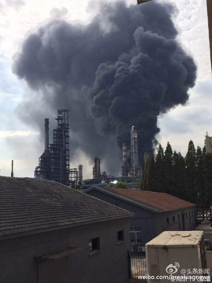 Đài truyền hình trung ương Trung Quốc CCTV đã đăng tải những bức ảnh về nhà máy lọc dầu Jinlingshihua ở TP Nam Kinh chìm trong khói lửa trên Twitter.