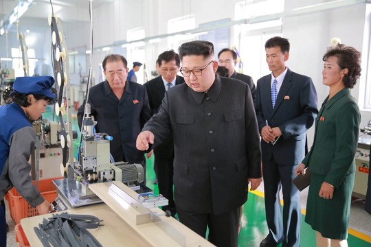 Ông Kim trong chuyến thăm nhà máy Mangyongdae ở thủ đô B́nh Nhưỡng ngày 7-10. Ảnh: REUTERS