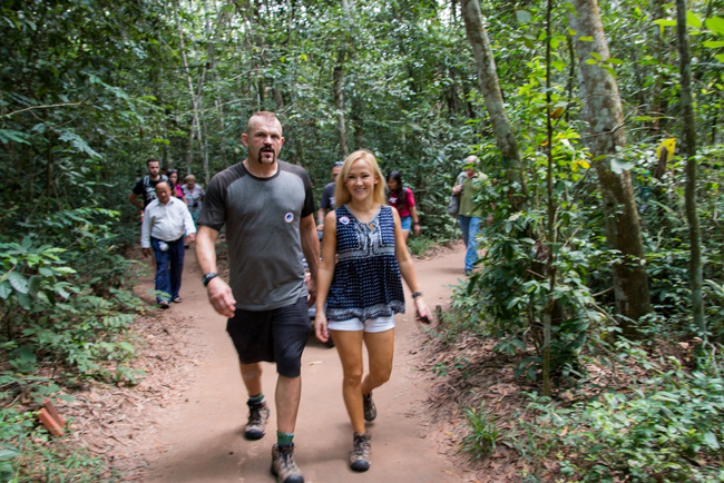 Sau khi đặt chân đến Việt Nam, vào sáng nay (15/10), huyền thoại MMA – Chuck Liddell đã dẫn vợ và hai con đi tham quan địa đạo Củ Chi (TPHCM). Tại đây, tất cả những người trong đoàn đều bất ngờ trước câu chuyện liên quan đến bà xã của võ sỹ triệu phú làng võ thuật thế giới.
