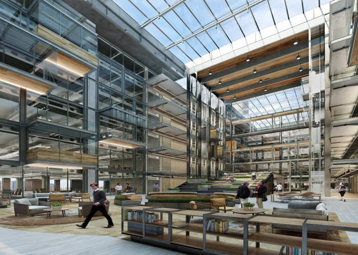 Không gian khoảng 46.451 m2, trải rộng sáu tầng, theo xu hướng tăng không gian làm việc đích thực. Lối vào của Apple sẽ được trải sàn bê tông lớn. Để nhìn toàn cảnh thành phố, tòa nhà cung cấp một thang máy bằng kính.