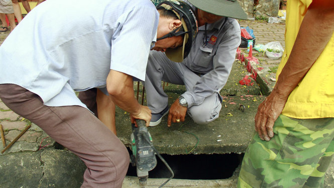 Việc che chắn lại thành hố nơi bé Hiếu bị nước cuốn chỉ mất vài chục phút và xem ra không tốn chi phí bao nhiêu, với nguyên liệu chỉ gồm vài thanh sắt và 2-3 nhân công.