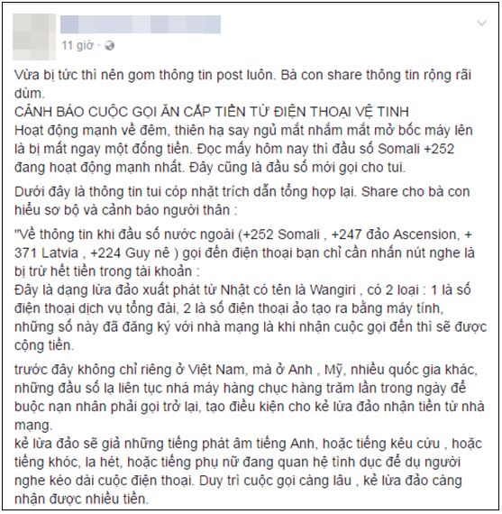 Những dòng cảnh báo này đang được lan truyền mạnh trên mạng xã hội, nhiều người sử dụng điện thoại đã chia sẻ để báo nhau cần cảnh giác với số điện thoại có đầu số lạ kẻo mất tiền oan.