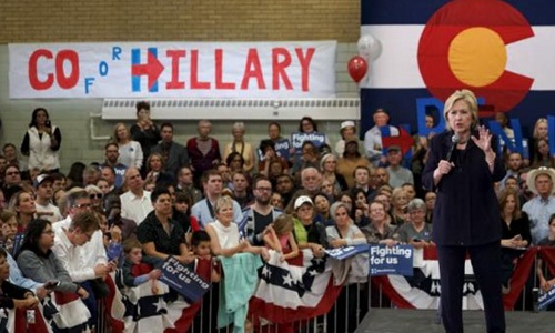 Ứng viên đảng Dân chủ Hillary Clinton tại bang Colorado. Ảnh: Reuters