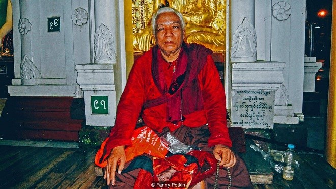 Thầy phù thủy U Tin Naing nổi tiếng với khả năng chữa bệnh và trừ tà ở chùa Shwedagon.