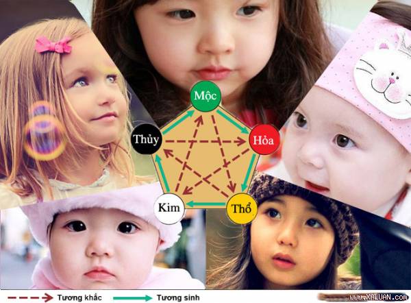 Vậy hãy quan tâm tới con bạn sinh năm nào và bản mệnh là gì. Chẳng hạn 2012 và 2013 là mệnh Thủy, 2014-2015 là mệnh Kim thì trong 4 năm này các tên gắn với hành Kim hoặc Thủy đều là những cái tên có thể đặt được. Ví dụ: Kim, Ngân, Cương, Hà, Thủy, Giang, Triều, Uyên, Thanh, Linh, Bảo, Vân, Nguyệt… Các chữ đặt tên ẩn chứa trong nó yếu tố Ngũ Hành sẽ là một trong những yếu tố tương tác với Ngũ Hành của bản mệnh để tạo thế tương sinh thuận lợi cho cuộc đời của con sau này.