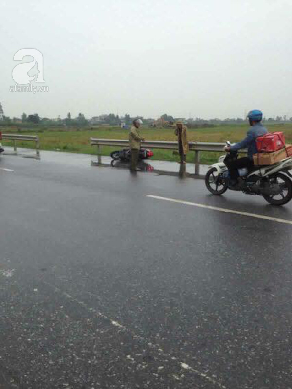 Tiếp tục nhìn lên phía trước người dân thấy một phụ nữ đang nằm bất động với những vết thương tích. Cách hiện trường 70 m là chiếc xe SH của nạn nhân vẫn còn nguyên vẹn. Theo lời cháu bé đó chính là mẹ mình và hai mẹ con bị một người lạ mặt chém từ phía sau.