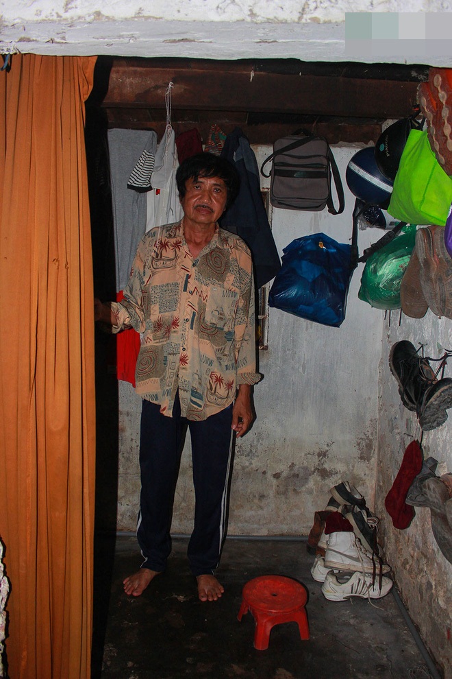 Ông Dũng đang sống một mình cô độc trong căn nhà chật hẹp, ẩm thấp chỉ vỏn vẹn chưa đầy 10 mét vuông tại đường Điện Biên Phủ, quận Bình Thạnh, TP.HCM.