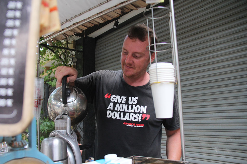 Tôi bật cười với slogan trên chiếc áo phông Vincent: “Give us a million dollars!” (Mang cho chúng tôi một triệu đô) và nhủ rằng con số đó cũng không xa nếu anh chàng này cứ tiếp tục làm việc chăm chỉ. Vincent đại diện cho một nhóm đàn ông phương Tây, không ngại khó lập nghiệp dù tuổi không còn trẻ và có trái tim luôn ở tuổi 20.