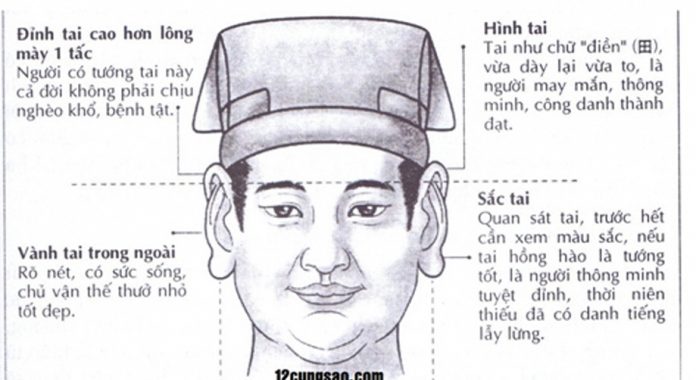 Đầu là chủ thể của cơ thể con người, hai tai được ví như hai cửa phụ ở cổng thành. Người có tai to thường khoẻ mạnh. Nếu trong tai có lông tờ nhỏ thì người này có thể trường thọ.