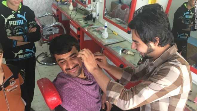 Một người đàn ông ở làng al Fazliya(cách Mosul 20 km) cạo râu sau khi làng của anh ta được giải phóng khỏi IS. Ảnh: CNN.