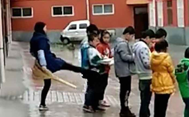 Nữ giáo viên đã cầm một cây chổi, đuổi học sinh ra khỏi lớp và bắt những đứa trẻ đứng thành hàng dưới trời mưa, Mirror đưa tin. Một nhân chứng đã dùng điện thoại quay lại toàn bộ sự việc.