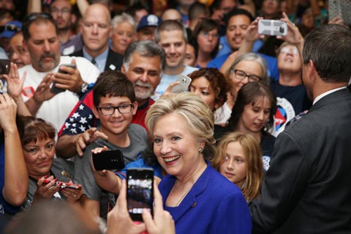 Bà Hillary Clinton chụp ảnh cùng người dân trong cuộc vận động tranh cử ở TP Las Vegas hôm 2-11 Ảnh: REVIEW JOURNAL